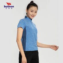 butnon 巴特侬 运动T恤女短袖立领拉链上装夏季新品透气速干衣运动服拼色针织上衣9116 艳蓝 XXL